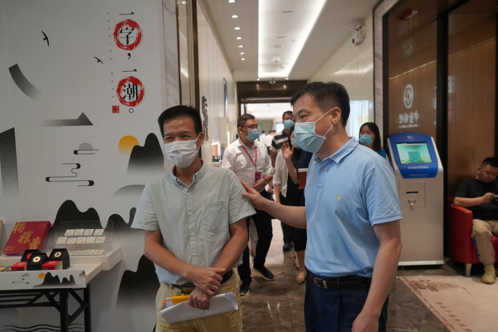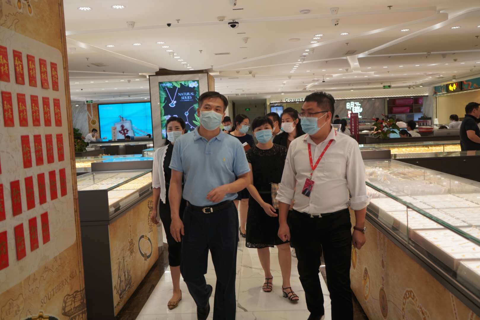 盧耀明主席一行先后參觀視察了明豐珠寶展廳和“職工之家”,并詳細(xì)詢問了疫情期間公司的復(fù)工復(fù)產(chǎn)情況。展廳的智能化建設(shè)和云展廳特色品牌專柜等配套服務(wù)得到了大家的一致贊賞。